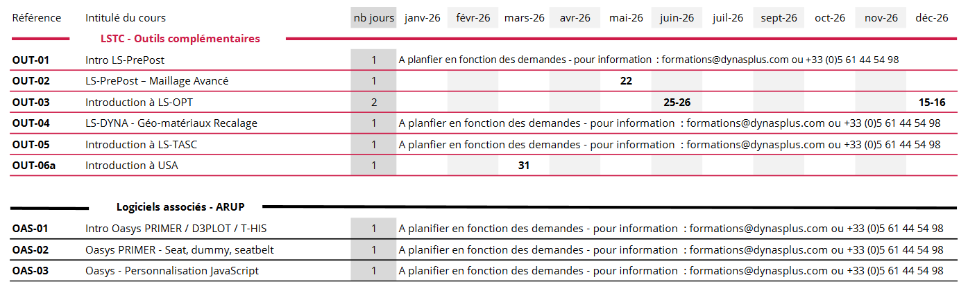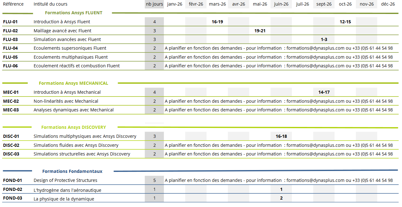 Liste des formations ANSYS LST & ARUP
