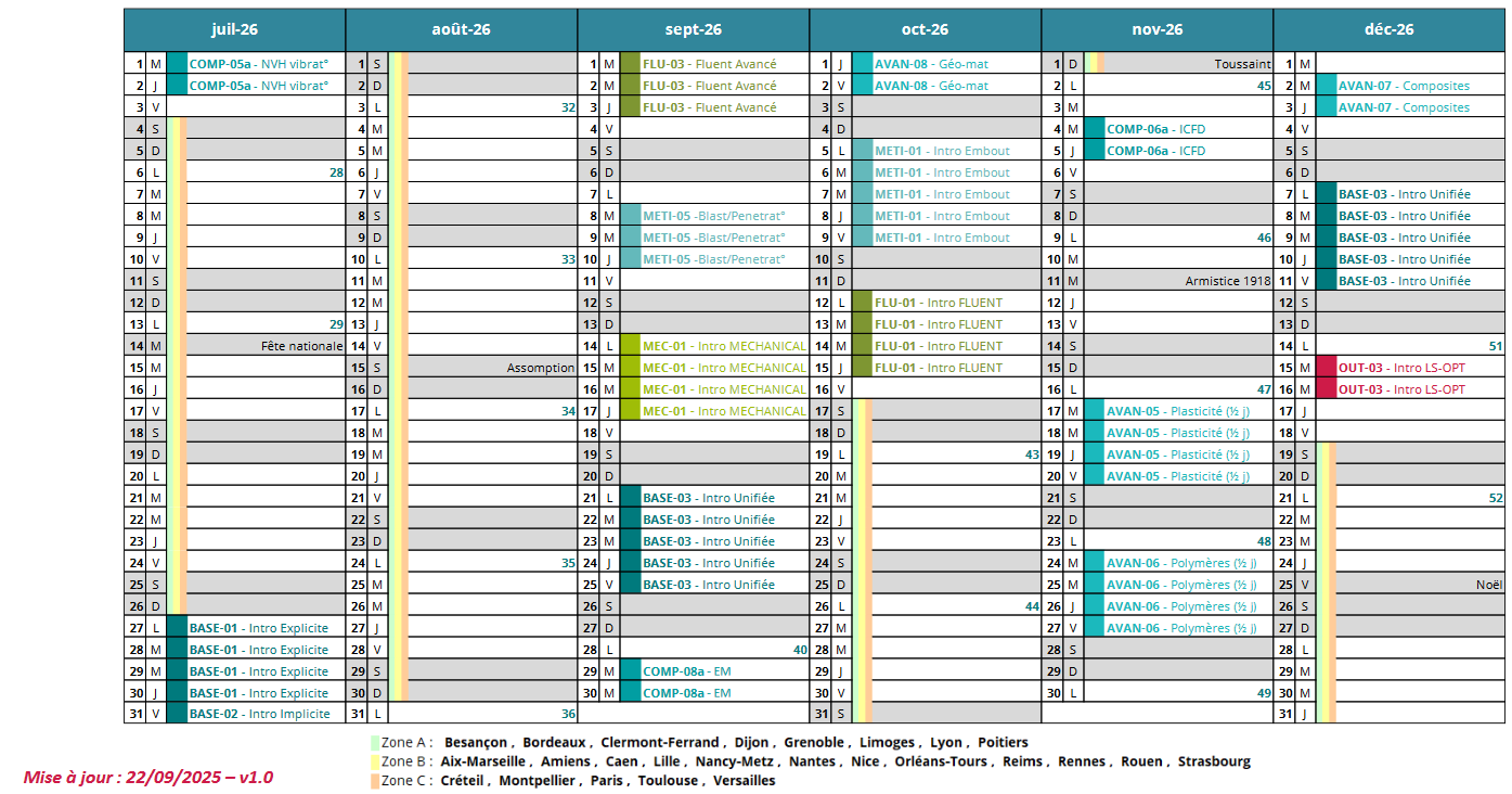 Leurs expériences et leurs compétences sans cesse remises à jour, assurent à nos clients des cours à la pointe des méthodes modernes de modélisation et de simulation. Les noms des formateurs prévus pour chaque formation sont indiqués dans la fiche descriptive associée.
